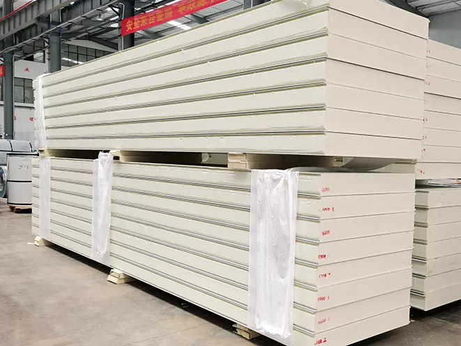 Ujenzi wa Haraka na Rahisi: Paneli za sandwich za PU zimetengenezwa tayari na huja katika ukubwa wa kawaida, na kuifanya iwe rahisi kusakinisha. Hii inaruhusu muda wa ujenzi wa haraka, kupunguza gharama ya jumla na muda unaohitajika ili kukamilisha mradi.