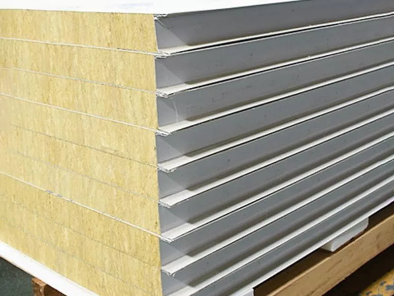 Msingi wa jopo la sandwich linajumuisha Rockwool, nyenzo ya insulation ya nyuzi za madini inayojulikana kwa sifa zake bora za insulation za mafuta na acoustic. Kuzunguka msingi huu kuna tabaka mbili za karatasi za chuma, kawaida chuma au alumini, ambayo hutoa rigidity ya muundo na kulinda insulation kutoka kwa mambo ya nje.