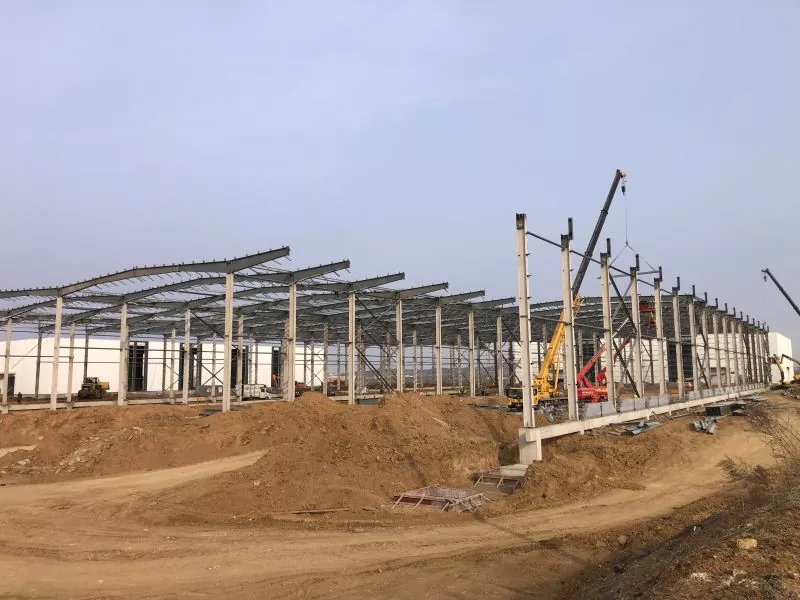Kwanza, jengo la ghala moja la chuma linaonyeshwa na muundo wake mkubwa na muundo wa nafasi ya juu. Na span kuanzia mita 12 hadi 40, na uwezo wa kuunganisha spans nyingi, inaweza kubeba kwa urahisi mistari anuwai ya uzalishaji na mpangilio wa vifaa. Urefu wa ghala pia unaweza kubadilishwa kulingana na mahitaji maalum, kuanzia mita kadhaa hadi zaidi ya mita kumi, kutoa kubadilika kukidhi mahitaji tofauti ya uzalishaji wa viwandani.