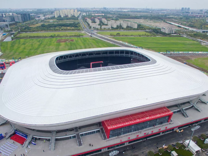 Ubunifu wa muundo wa uwanja unazunguka mfumo wa chuma ambao unasaidia ukumbi wote. Mihimili ya chuma na nguzo hutumiwa kuunda muundo mgumu na thabiti ambao unaweza kuhimili hali ya hewa kali na uzani wa maelfu ya watazamaji. Mfumo wa chuma pia huruhusu uundaji wa nafasi wazi na za hewa, kuhakikisha uingizaji hewa mzuri na kupenya kwa taa asili.